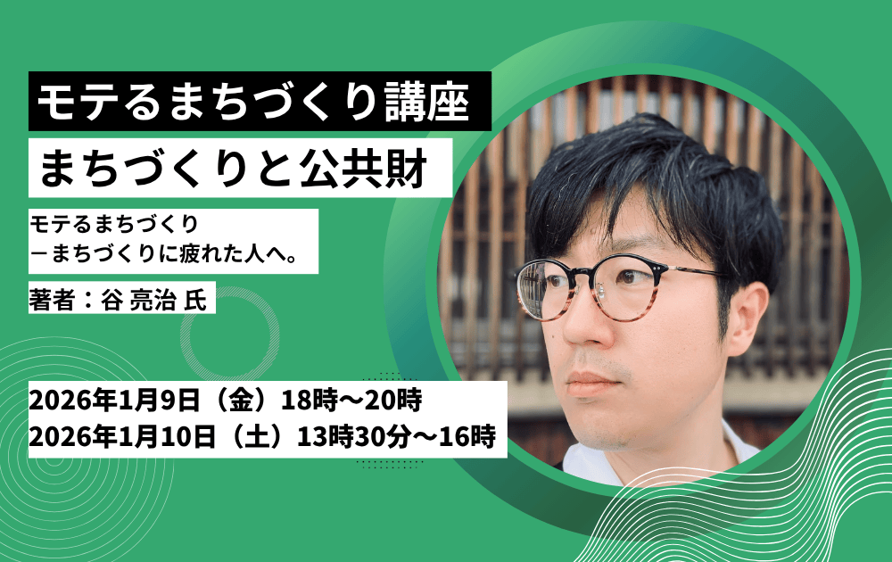 「モテるまちづくり」の著者である谷亮治氏に「モテまち理論」を学びながら、1日目は、「まちづくりと公共財」について考える回となります。